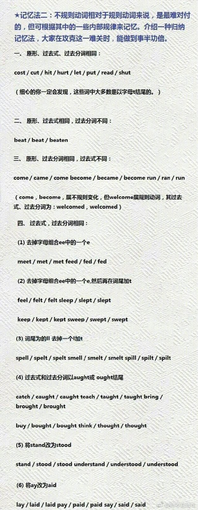 常用的英语不规则动词 完整 及记忆方法 上课听不懂进来看看